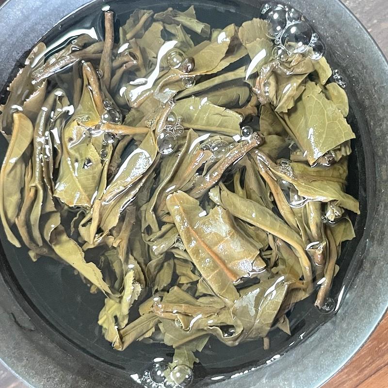 看看叶底,柔软鲜活,颜色虽变,气韵不凡。