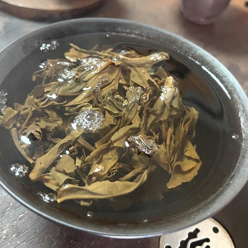 看看叶底,柔软鲜活,颜色虽变,气韵不凡。